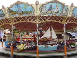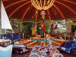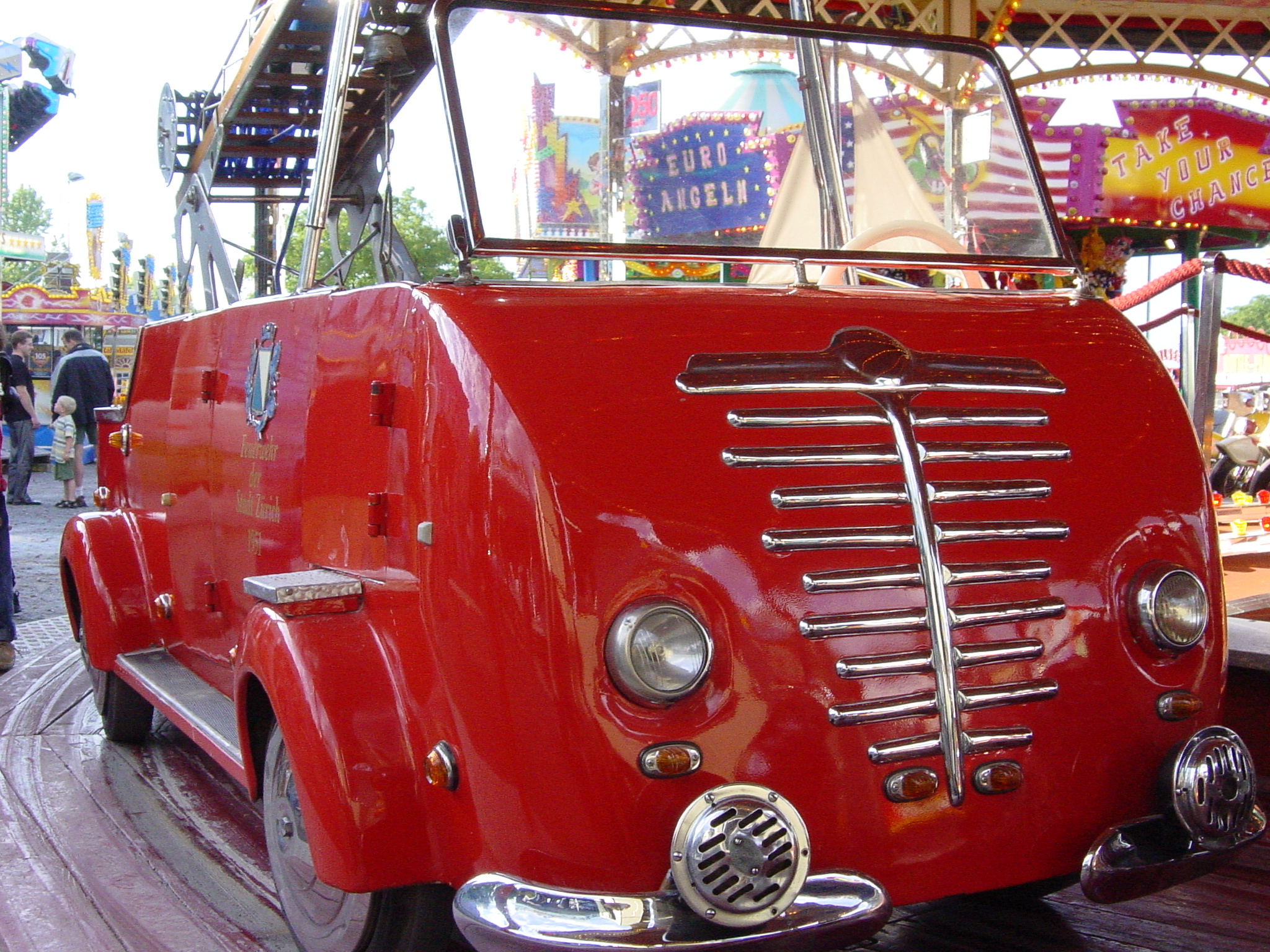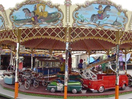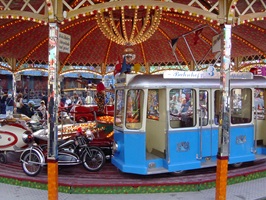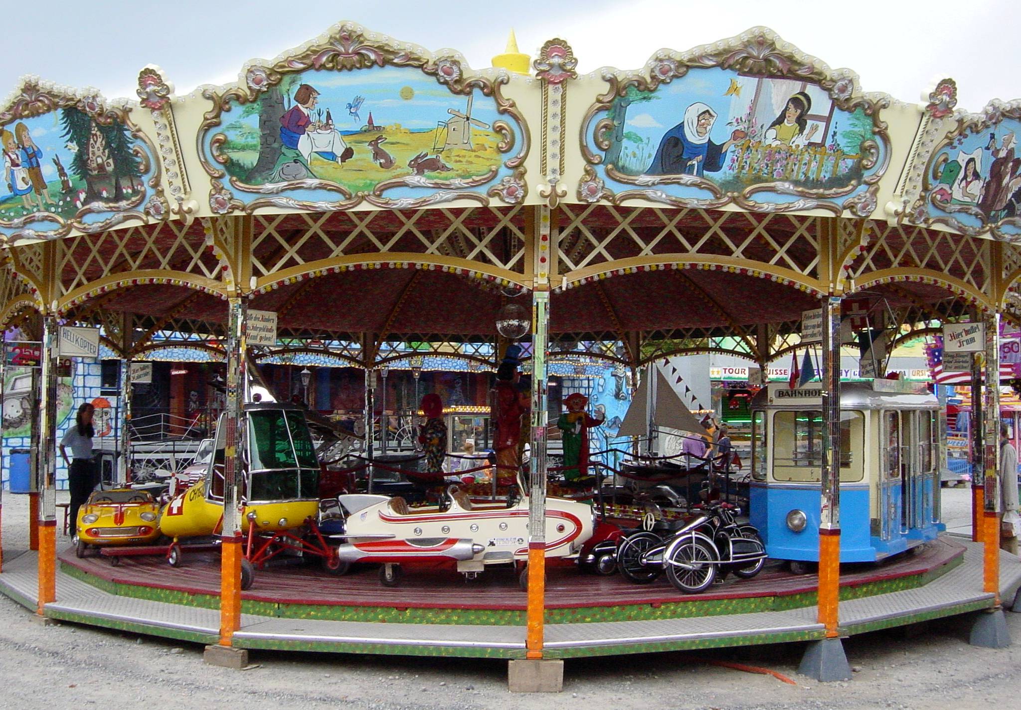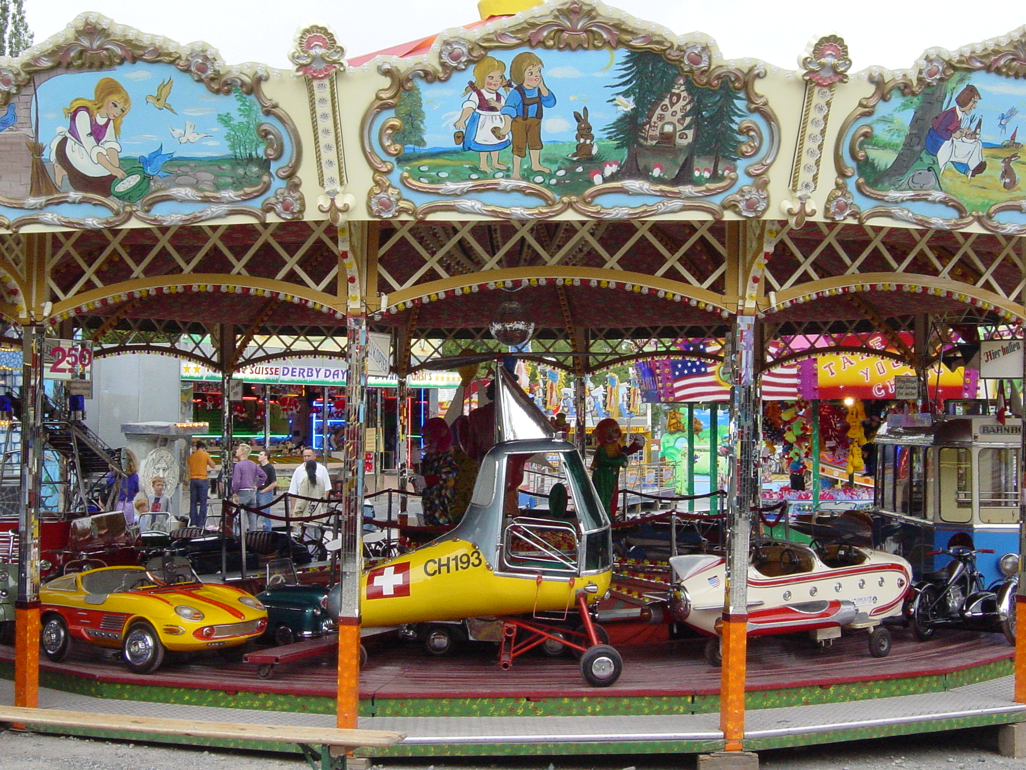Mit seinen originalgetreu gestalteten Fahrzeugen lädt das Karussell zu einer kleinen Reise in die 1950er-Jahre ein. Ob im detailreichen Zürich Tram, im klassischen Feuerwehrauto, im Hubschrauber oder in einem der vielen weiteren historischen Fahrzeuge – hier dürfen Kinder selbst ans Steuer und in fantasievolle Rollen schlüpfen.
