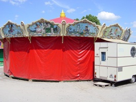 Unser liebevoll erhaltenes Kinderkarussell aus dem Jahr 1951 ist ein echtes Herzensstück unseres Familienbetriebs – und seit Generationen im Besitz unserer Familie. Als absolutes Unikat verbindet es traditionellen Jahrmarkt-Charme mit liebevollen Details aus einer vergangenen Zeit.
