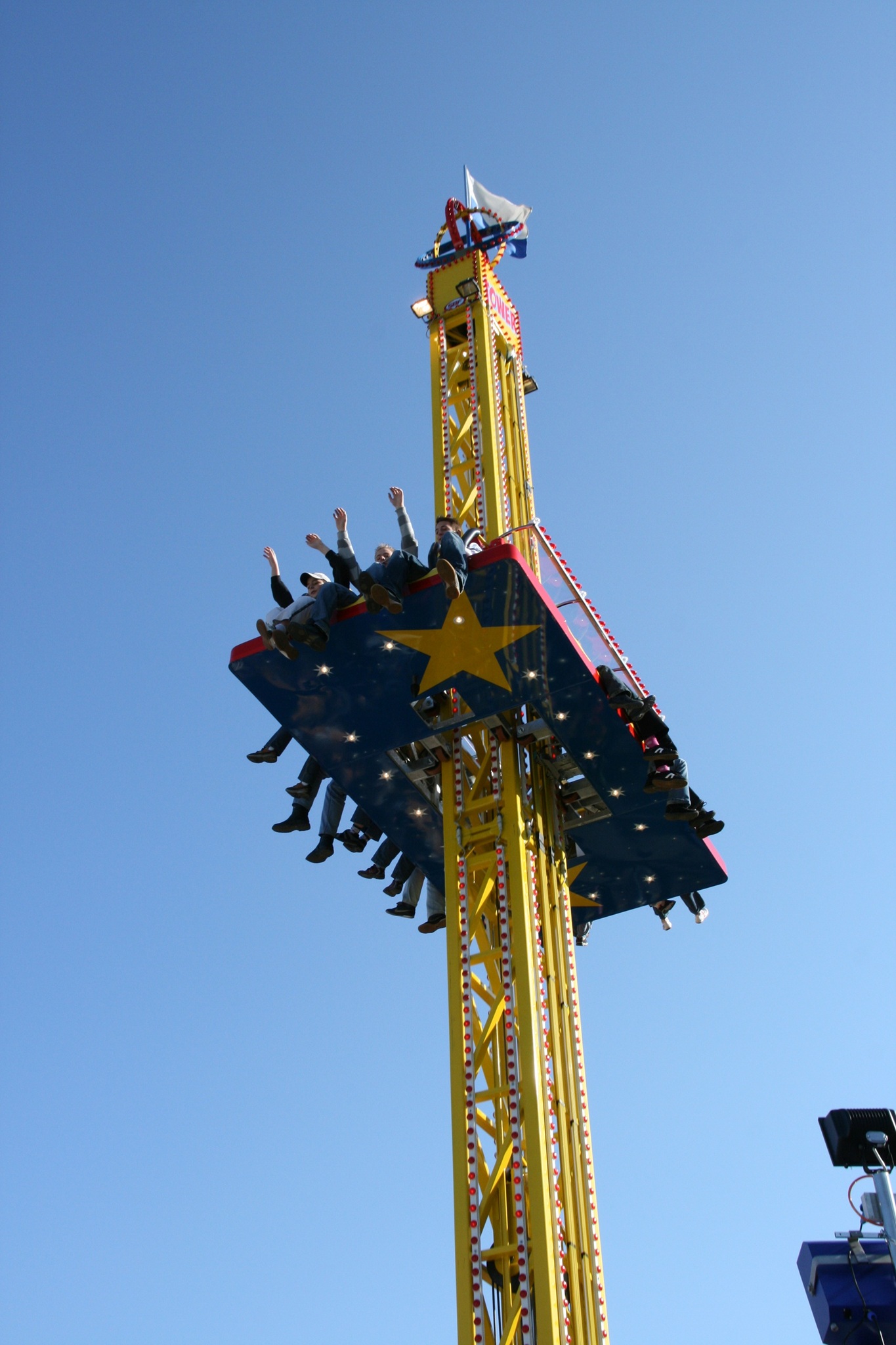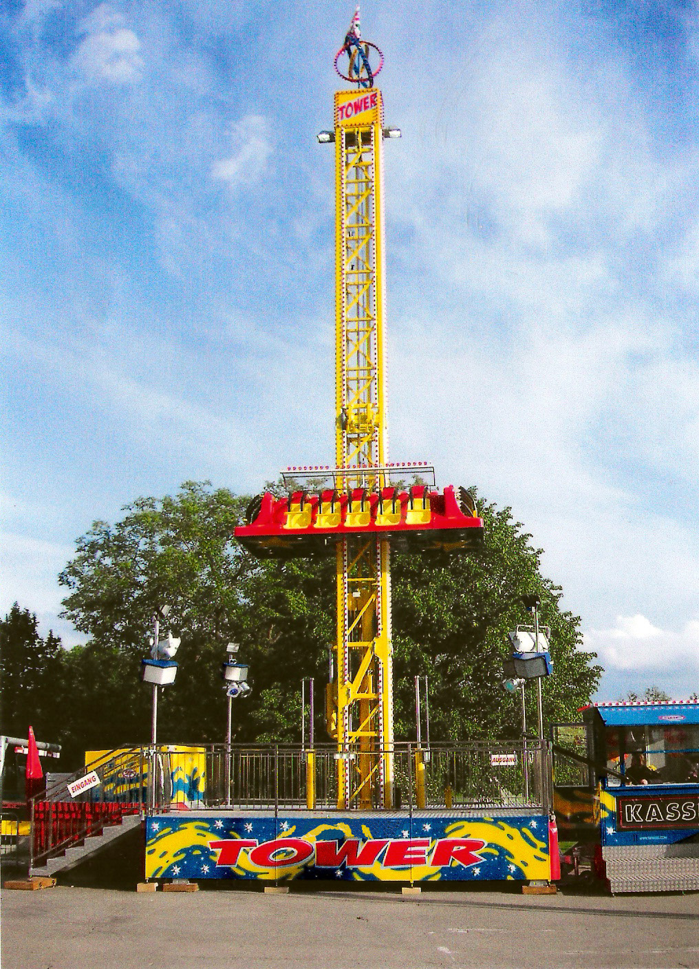 Unser Freefall Tower ragt 17 Meter in die Höhe – kompakt, intensiv und perfekt für alle, die den freien Fall lieben. Schon während des langsamen Aufstiegs steigt die Spannung – mit jedem Meter wächst die Vorfreude auf das, was gleichkommt. Oben angekommen, bleibt einen kurzen Moment Zeit, den Ausblick zu genießen, bevor es rasant in die Tiefe geht.
